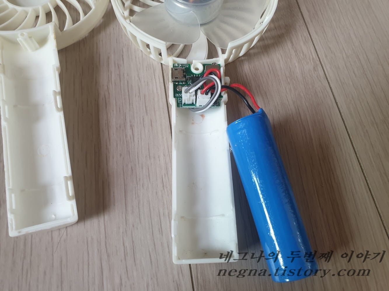 사용하지 않는 휴대용 선풍기에서 배터리 추출. 수리 시도 단선 때문에 날려 먹은 선풍기. 😣 교체할 배터리가 필요합니다. 사용하지 않는 휴대용 선풍기에서 배터리를 꺼냈습니다. 이걸 교체하면 될 거 같은데. 커넥터가 필요한 때가 있더라고요. 잘라서 챙겨 놓았습니다. 18650 배터리. 이거면 되겠지. 결과는 아쉽게도. 하아! 다른 걸 찾아봐야겠네요. 핀 규격이 또 다를 수가 있구나... 😞 중얼거림 2025.09.07