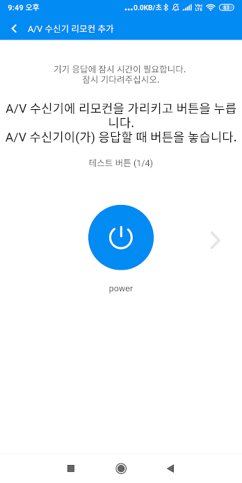 5. 스피커에 전원 버튼을 눌러 보면 반응이 옵니다. 전원이 껴져서 등록이 되었는데.