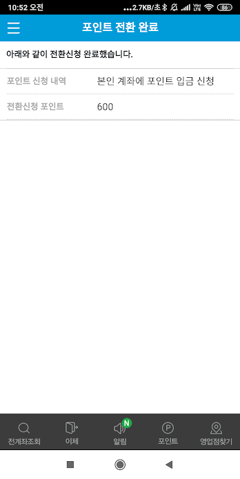 공인인증서 비밀번호를 누르면 포인트 전환 끝.