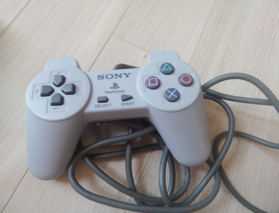 플스 원형 패드. 초기형이라 아날로그 스틱은 없습니다. 클래식 역시도 아날로그 스틱은 없습니다. 원가 상승 요인을 제거한 듯 보입니다. 개인적으로 플스 패드는 비선호합니다. 손이 작은 동양인에 맞는 크기라는 점 빼면. 디지털 패드의 구조 ( 격투 게임하기 불편 ), 도형으로 표기된 방식도 마음에 들지 않고요. 저 O, X를 바라보는 동서양 차이 때문에 혼란이 오는 경우도 있습니다. 직관적으로 A, B, X, Y 구조가 좋습니다.