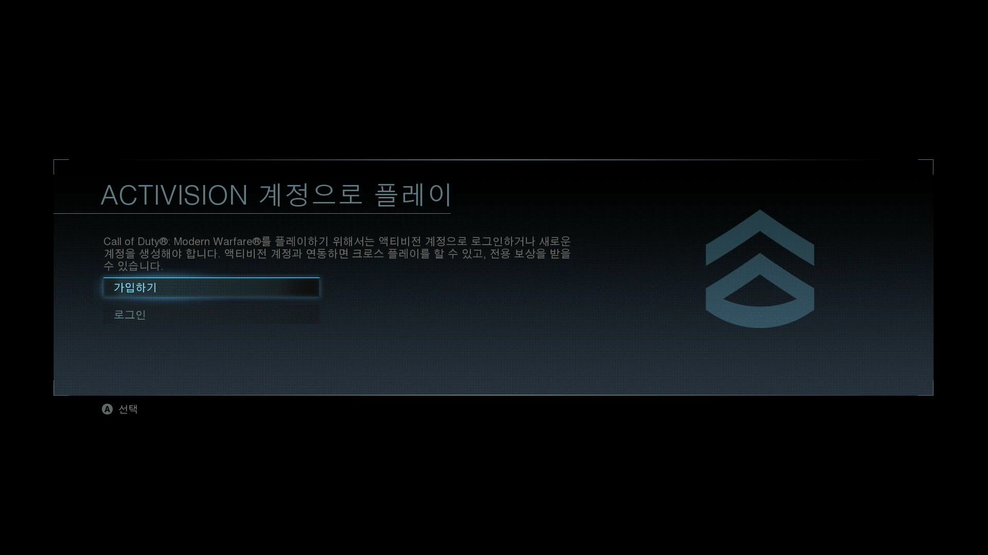 30기가 용량의 파일을 다운로드하고 설치. 테스트 플레이를 시작하기 위해서는 액티비전 계정이 필요합니다. 배틀넷과 연동이 되는 건가? 가입하라는 말에 피곤함이 몰려왔지만 ( 별 것 아니지만 막상 하려면 귀찮은 가입절차 ) 다행히 아이디와 비밀번호를 입력하면 끝입니다. 국가는 한국은 지원하지 않지만 테스트 플레이를 하는 데 별 문제없습니다.