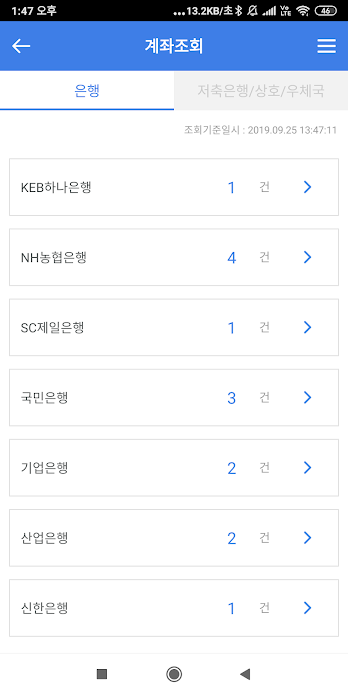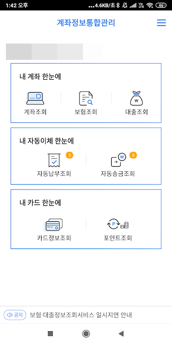 계좌, 보험, 카드, 대출금 조회 다 됩니다.