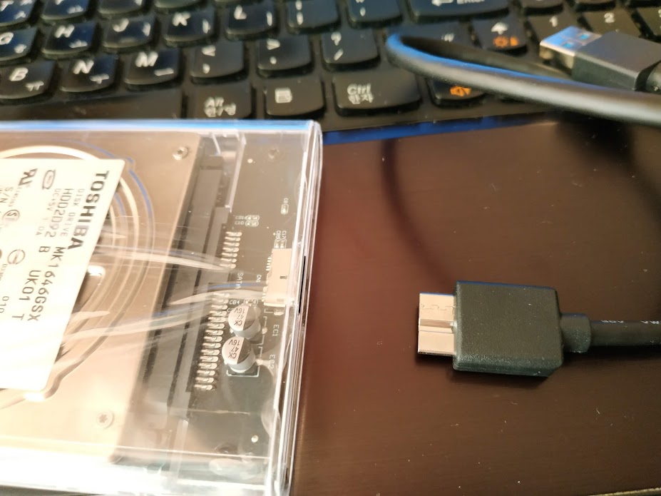 투명케이스가 1달러 더 비쌋습니다. 투명으로 선택하기를 잘했네요. 설치법은 설명할 필요가 없을 정도입니다. 케이스 분해해서 사타 단자에 하드디스크 연결하면 끝입니다.