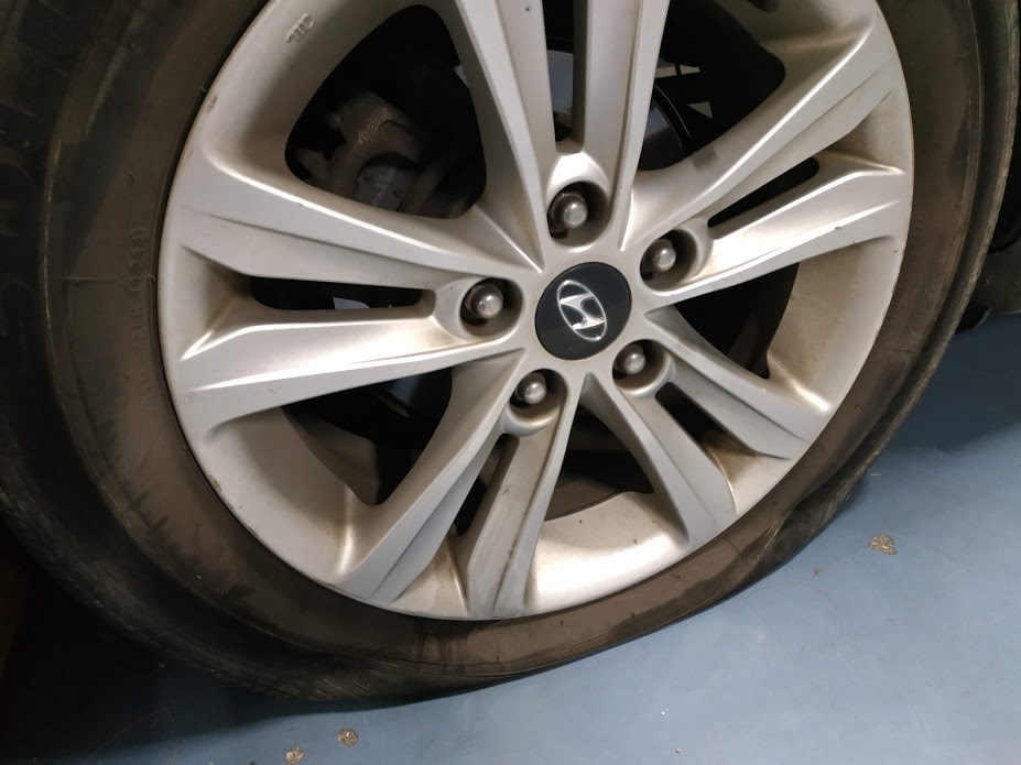 우리나라의 출동 서비스는 좋은게 부르면 늦어도 30분 이내로 옵니다. 고장접수 후 15분 만에 도착. 즉시 수리. 자체를 들어 올리는 것도 공기를 이용하는군요. 너무 옛날을 상상했나? 타이어에 바람을 넣고. 분무기에 물을 뿌려 구멍 난 곳을 확인. 타이어에 바람이 빠진 이유는 예상대로 뾰족한 금속에 찔려있었습니다. 총 비슷한 걸 사용해서 타이어를 때웁니다. 이것도 처음이라 신기하네요.