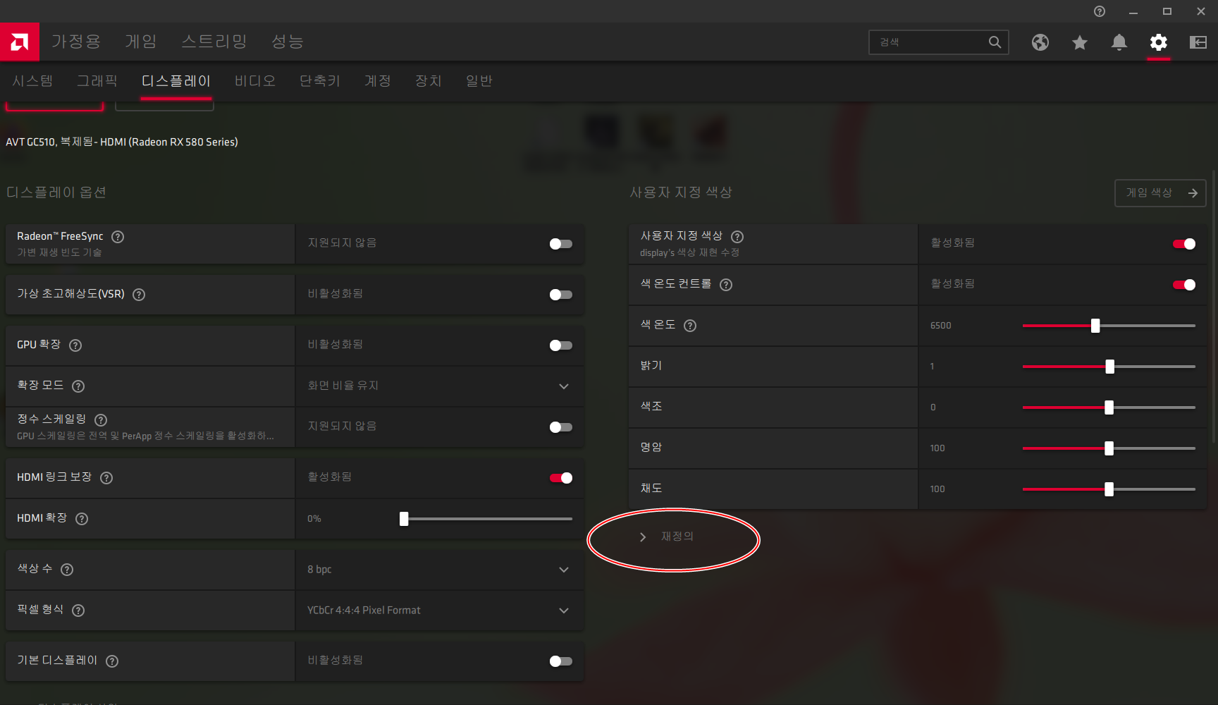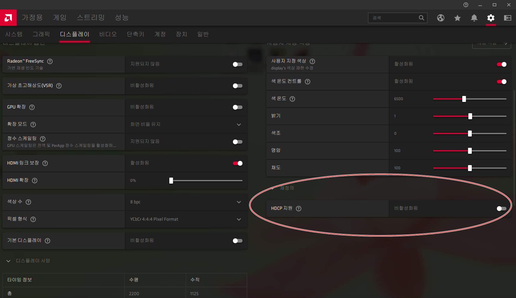 3. 라데온 설정에서 HDCP 지원 비활성화
