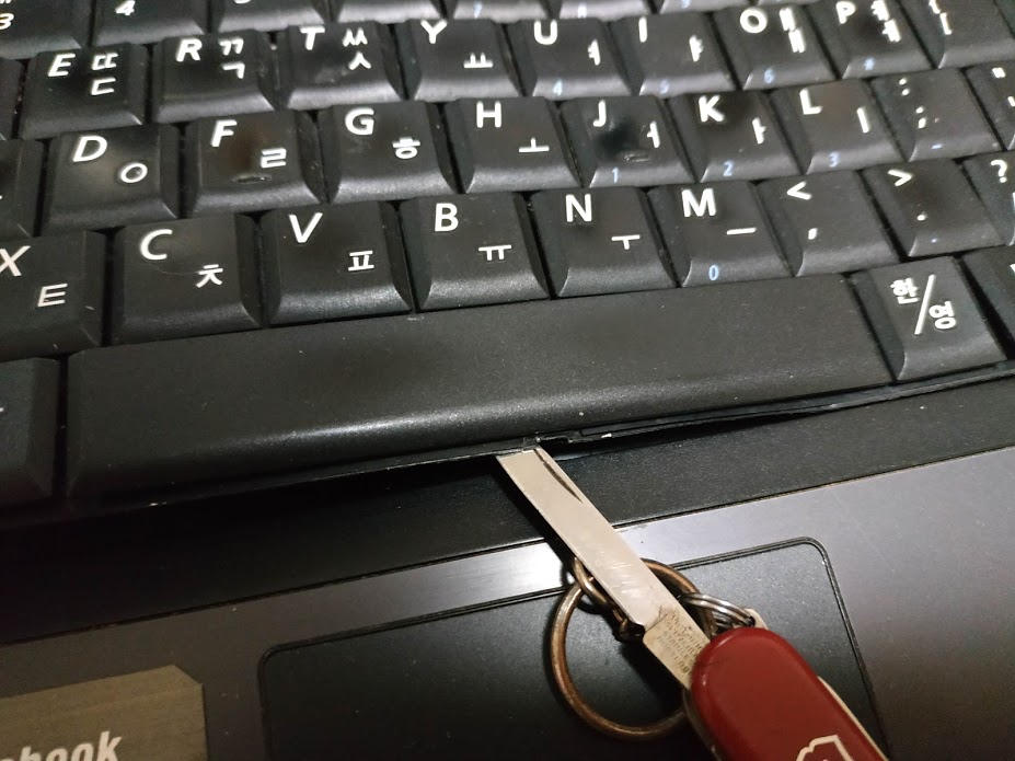 5. 노트북 키보드 아래에 홈을 살짝 들어 올리면.