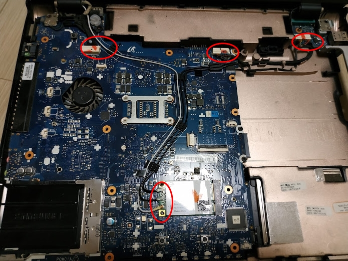 11. 무선랜과 LCD 모니터와 연결된 커넥터, 선을 분리. 메인보드에 있는 나사를 풀면 들어낼 수 있습니다.
