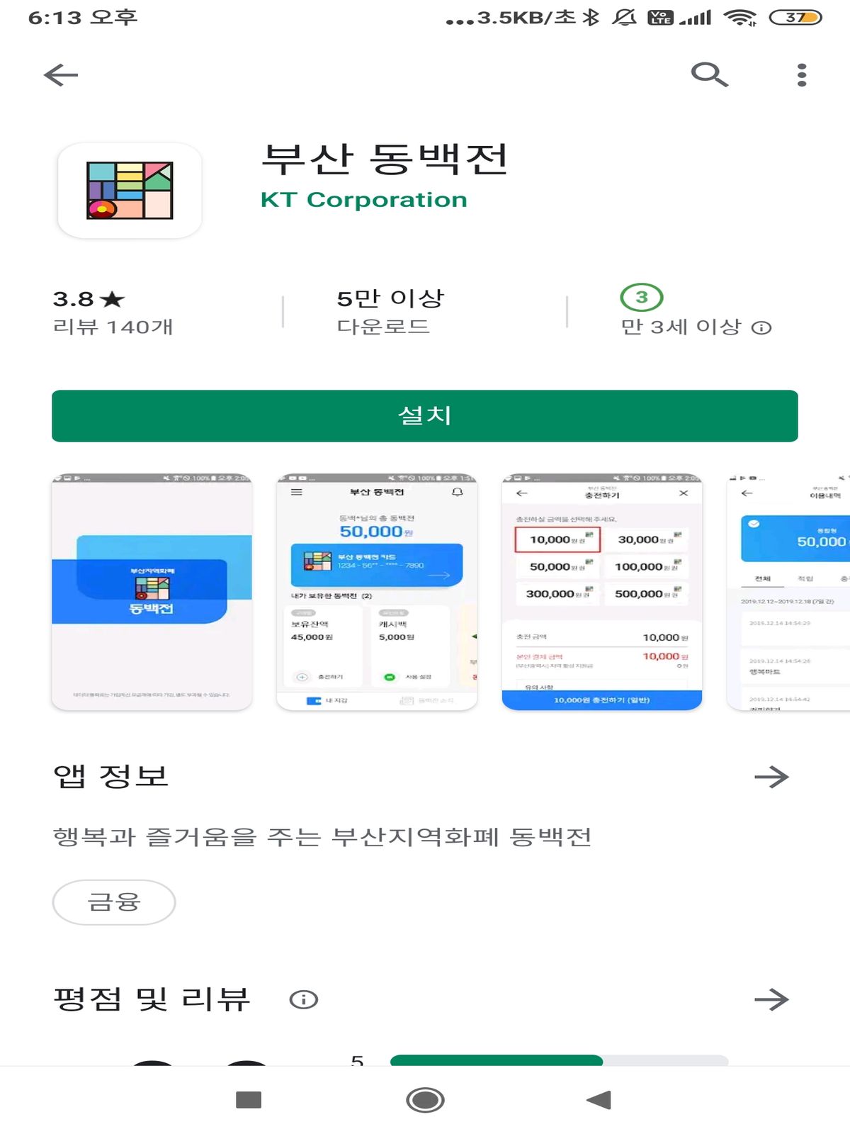 아직까지 동백전 앱 다운로드 수가 그리 많지는 않은 듯.