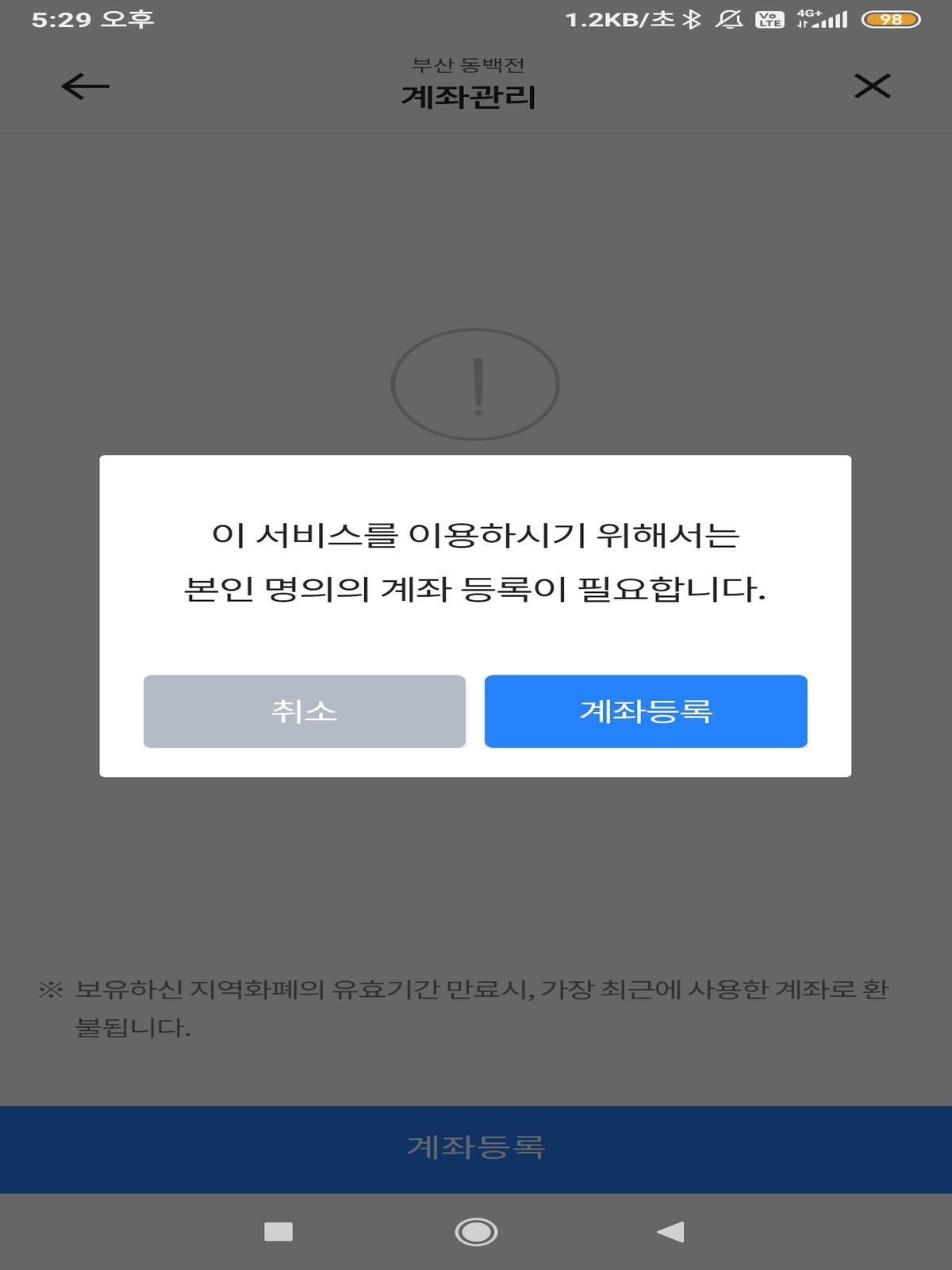 ◆ 동백전 카드에 충전할 계좌를 등록합니다.