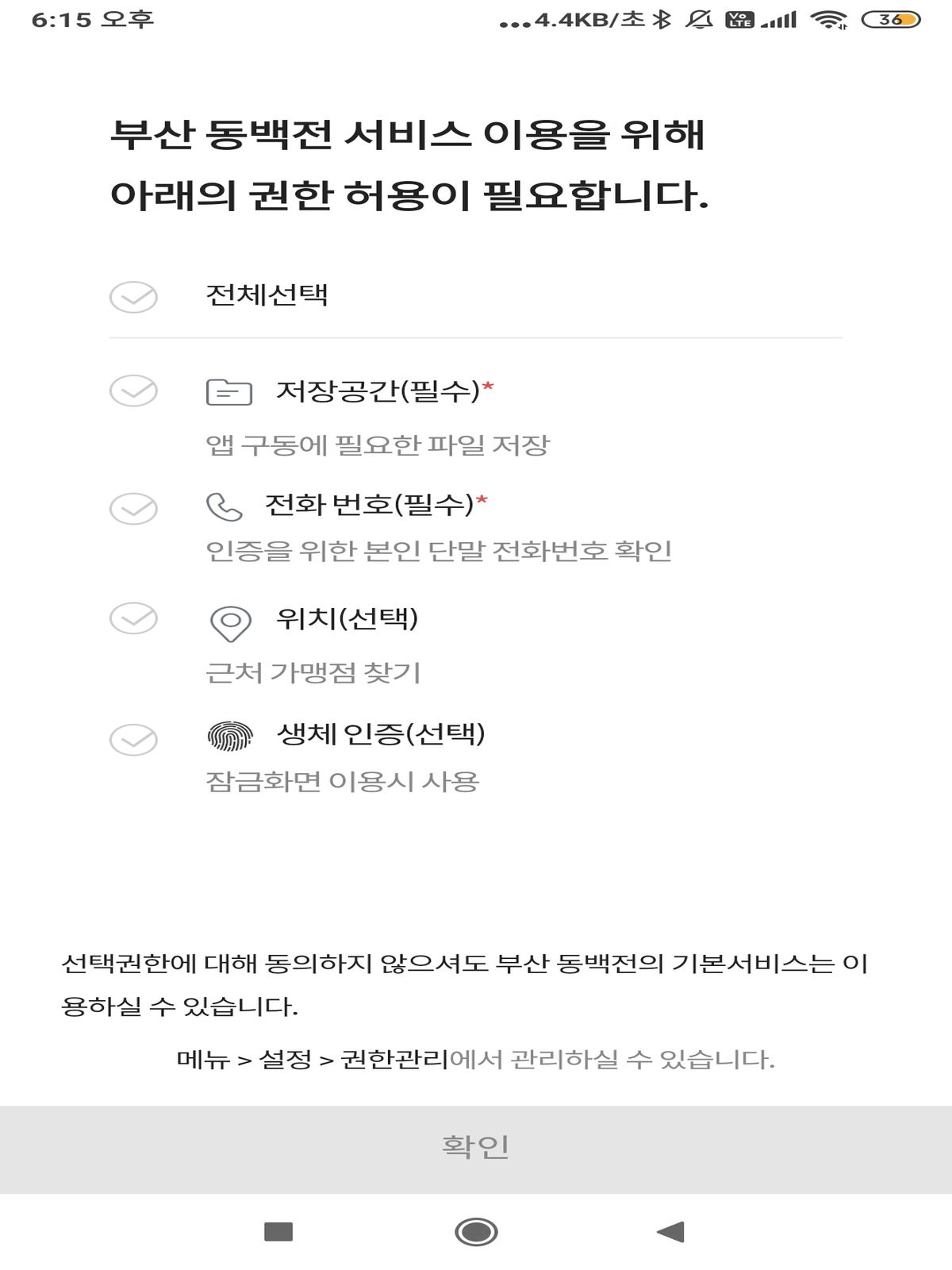 대부분 권한에 동의를 하는게 이용하는 데 편할겁니다.