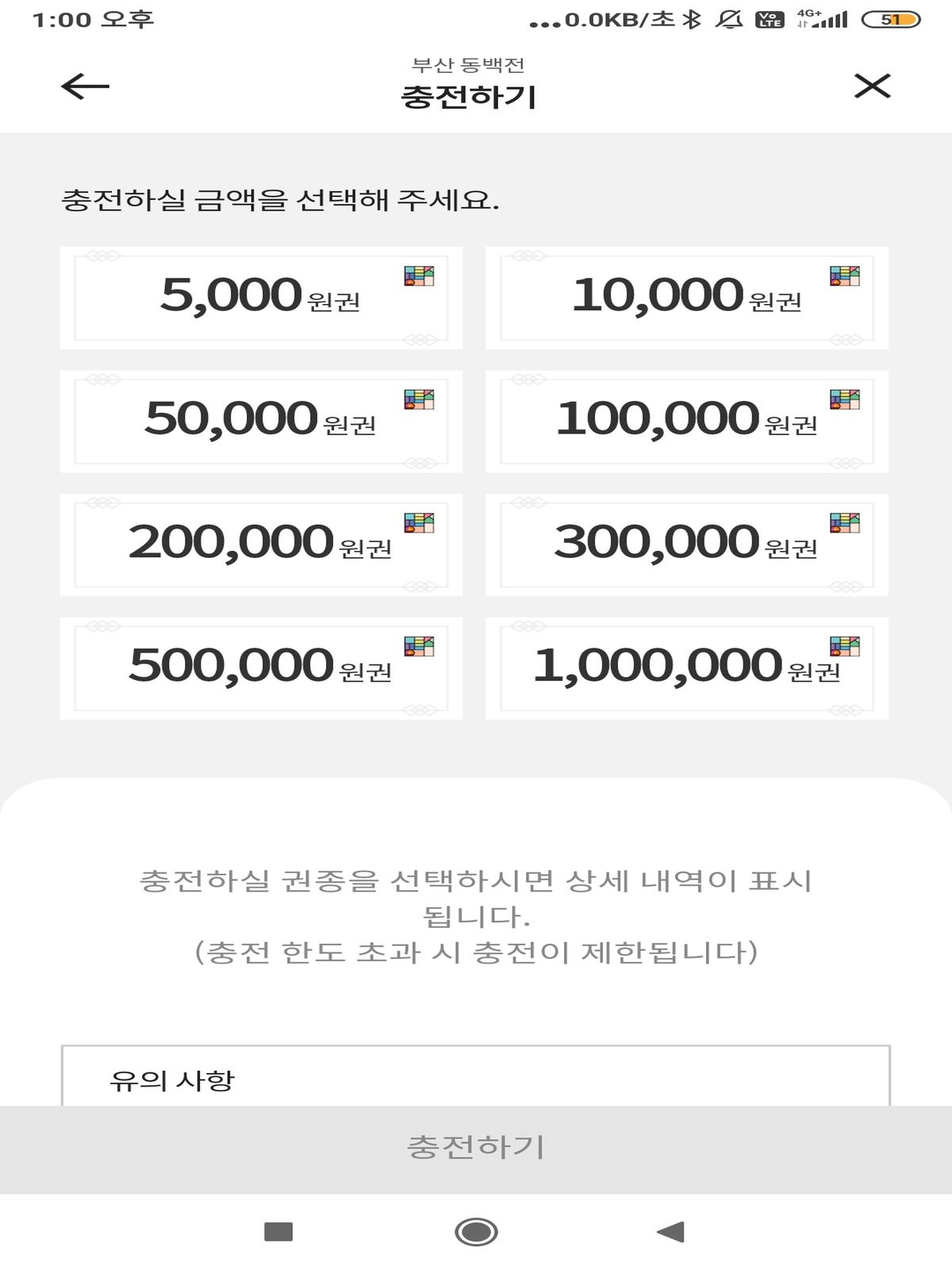 원하는 금액을 충전이 됩니다. 최소 5천원에서 최대 백만원까지