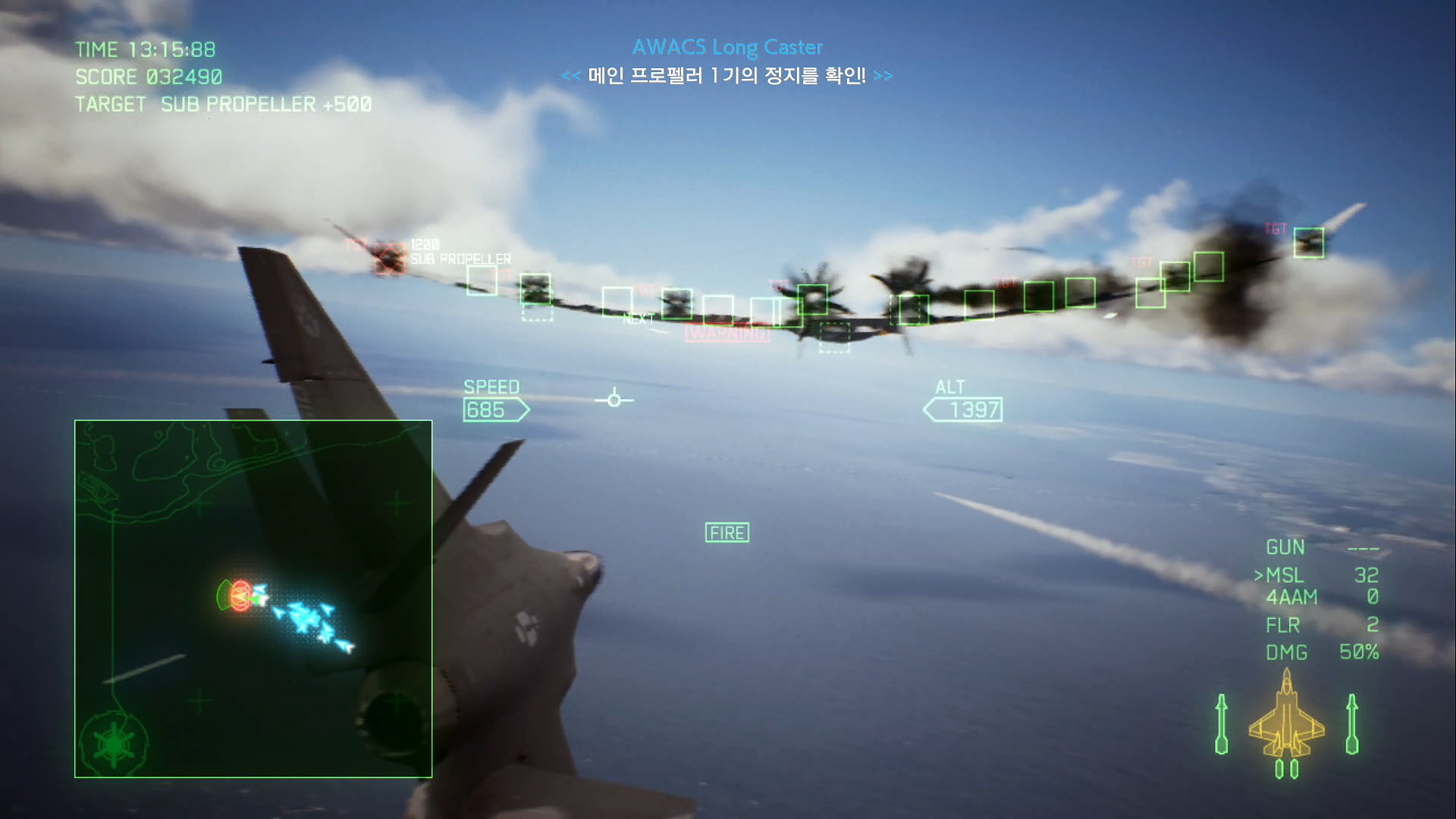 게임을 해보면서 느낀 점. '더빙이 절실하다.' 정신없는 회피기동, 적 기지 공격, 적기와 추격전을 벌이다 보면 동료들의 무선통신을 알아들을 수 없습니다. 내비게이션 '50미터 앞에서 우회전입니다.' 음성안내가 아닌 자막으로 봐야 했다면 쉽게 주행하지 못할 겁니다. 마이너 장르라 더빙이 될 일은 없고 한글화도 되어 있기 때문에 게임을 플레이하는데 지장은 없지만 게임 내내 아쉬웠습니다.