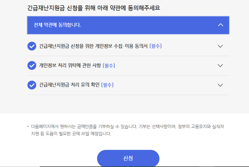 긴급재난지원 신청금액과 기부금액을 반드시 확인하세요.