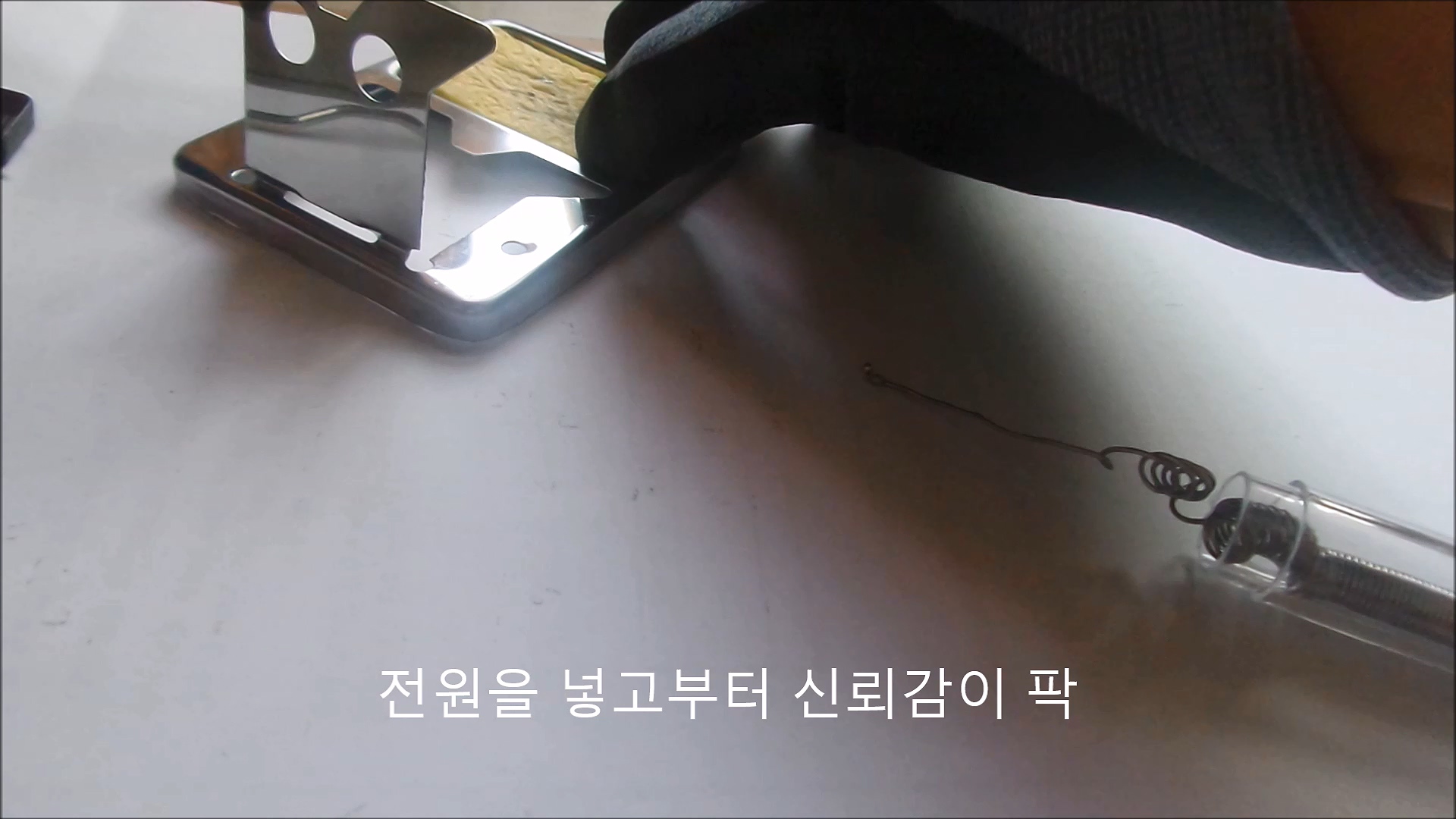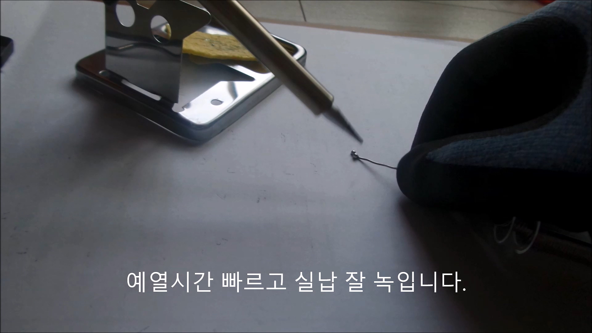 오픈마켓발 인두기는 전원을 넣자마자 믿음이 갔습니다. 2분간 예열시간을 가져라고 나와있었는데, 인두기의 열기와 냄새가 충분히 전해졌습니다. 테스트로 실납을 녹여보니 잘 녹아내립니다.
