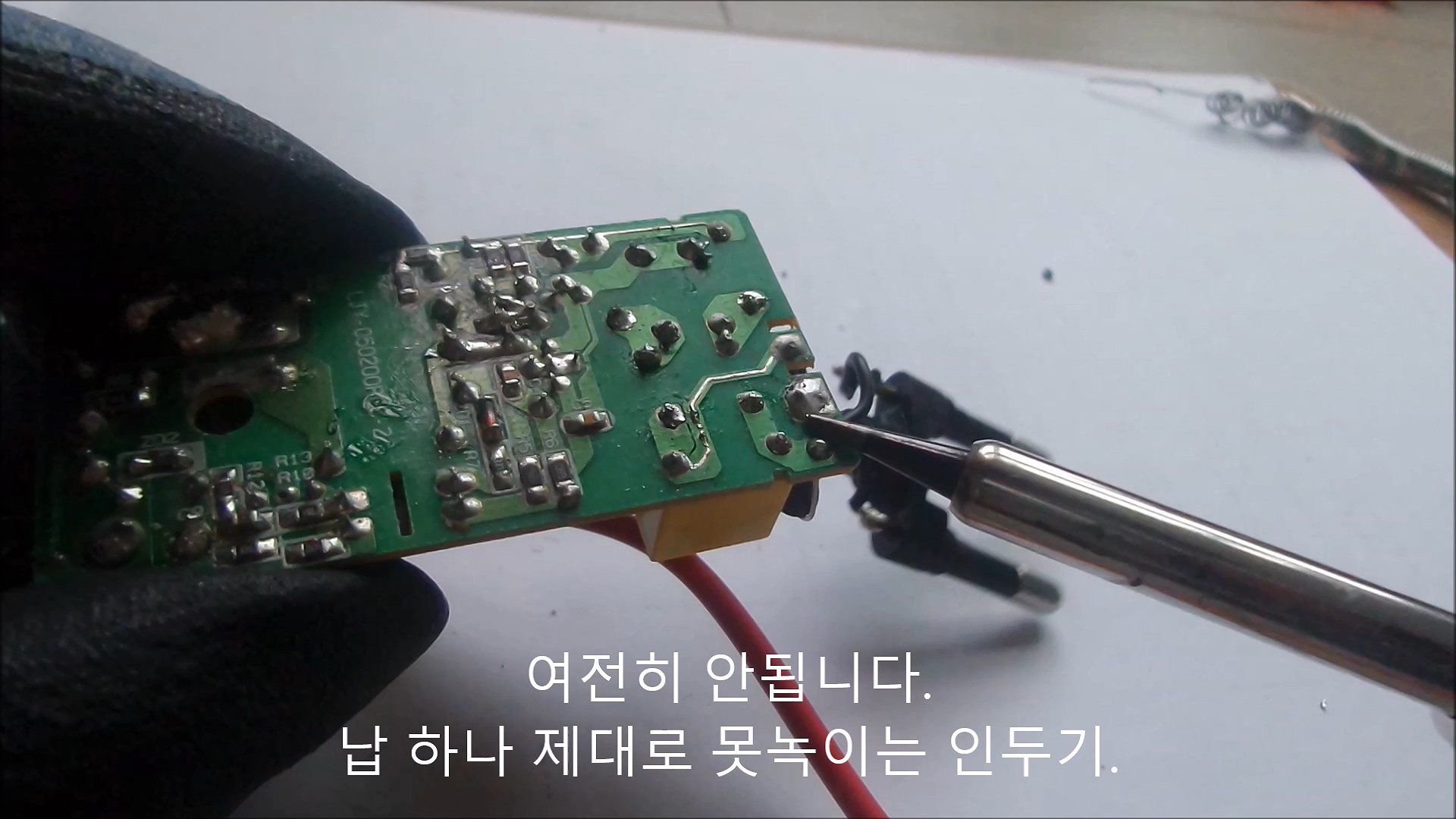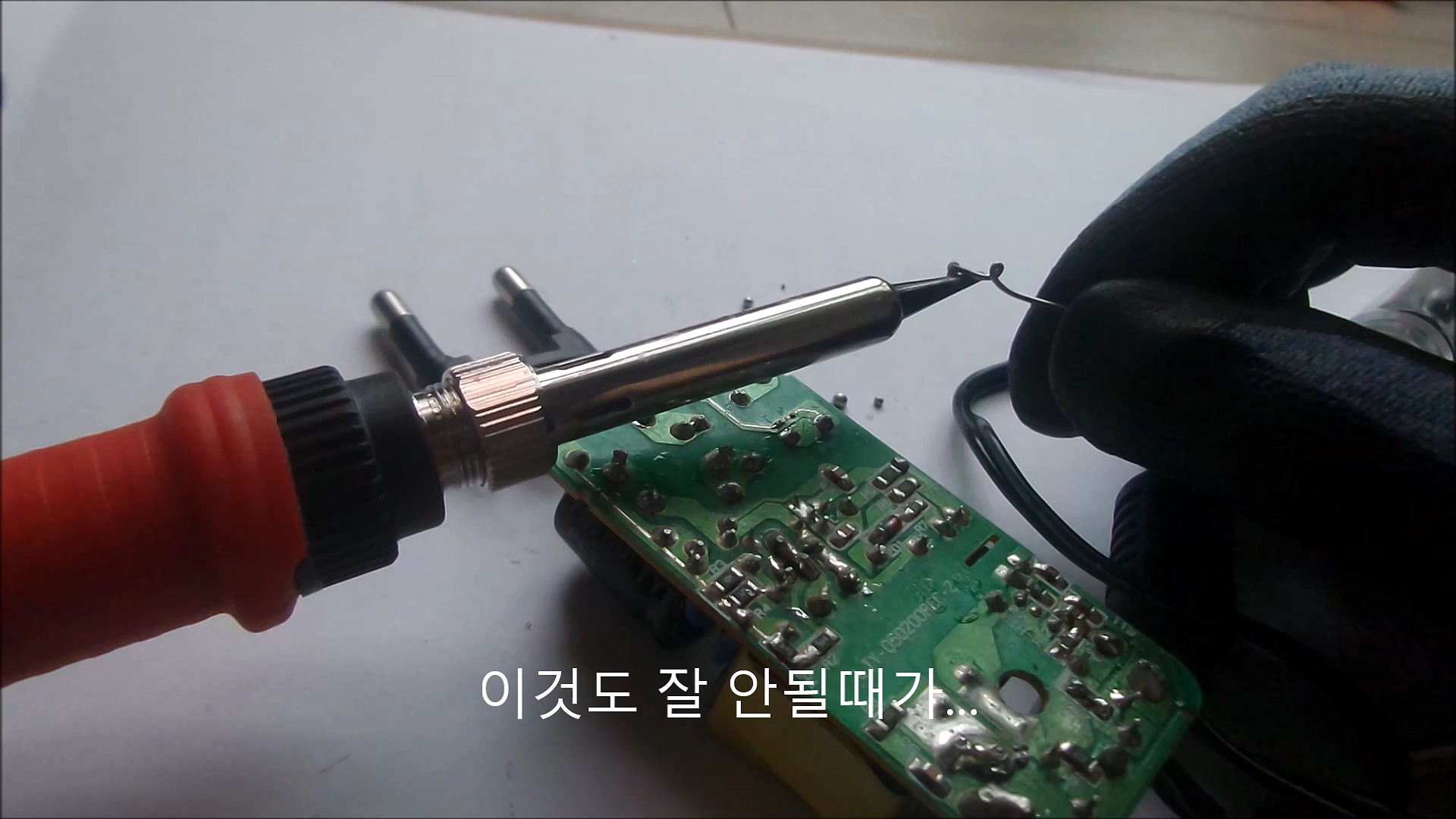 고장 난 어댑터로 테스트를 해봤습니다. 기판의 납을 녹이는지 테스트. '왜 이걸 하느냐?' JCD 인두기는 이게 안됩니다. 오픈마켓발은 한방에 되네요. 후련할 정도로 시원하게 잘 됩니다. 인두기는 이래야 정상이지.