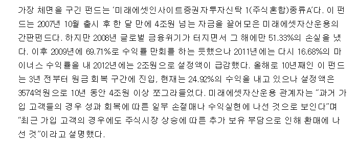 2017년 10월 이데일리 뉴스에서도 미차솔은 수익을 냈지만 설정액이 줄어들어 체면을 구겼다고 보도했습니다.