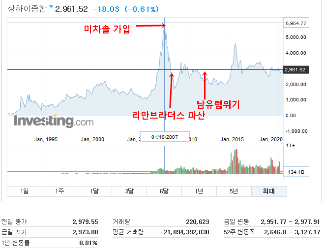 상하이 지수를 보면. 정말 산 정상에 올라갔을 때 붙잡았습니다. 미차솔은 홍콩 h지수를 봐야 하는데.