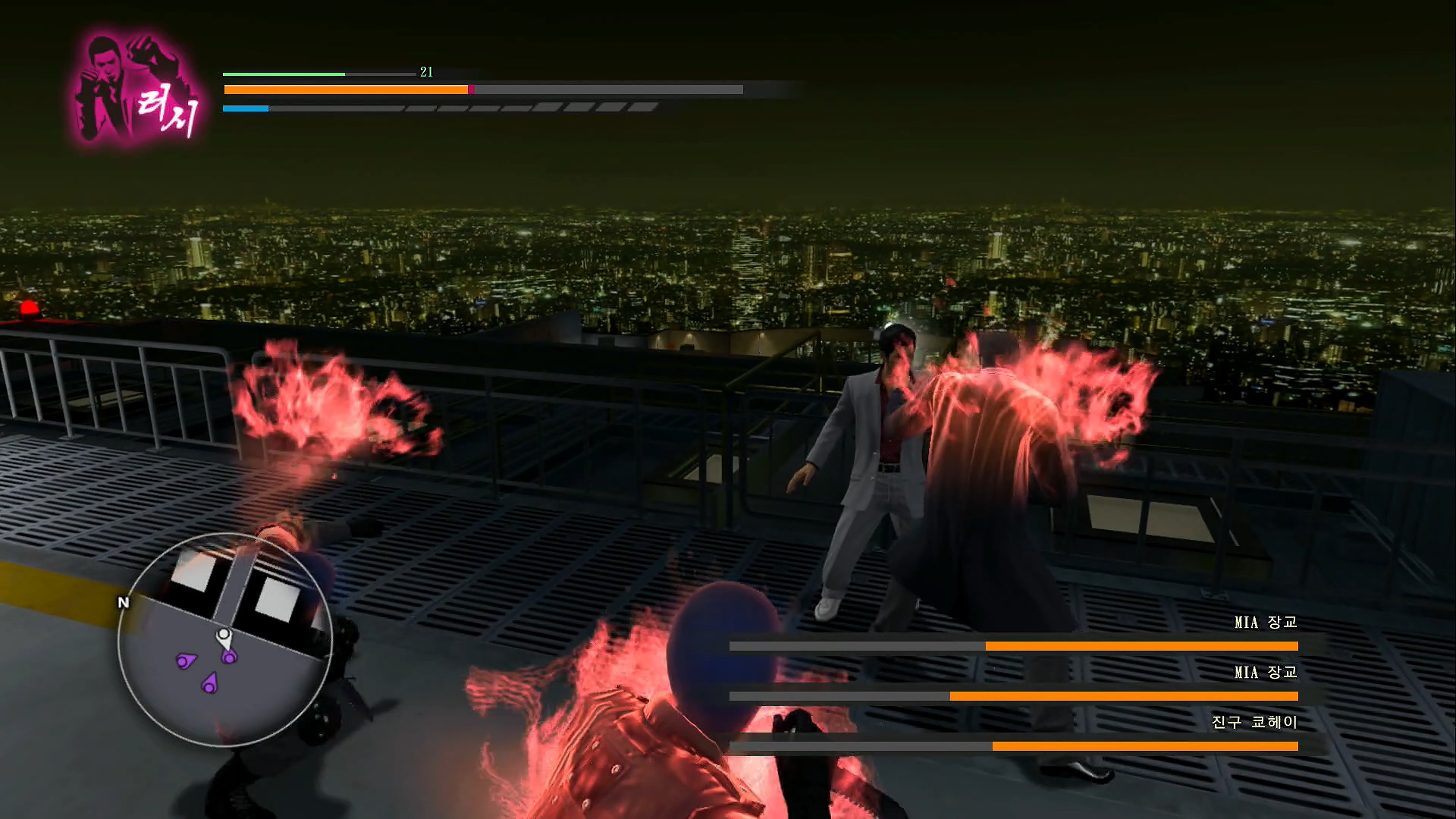 야쿠자 액션 게임으로 전투가 재미있어야 할 게임이지만 지루합니다. 정말 지루했어요. 버추어 파이터, 다이너 마이트 형사, 베어 너클 등 명작 액션 게임을 만든 세가가 왜 이렇게 지루한 액션 게임을 만드는지 모르겠습니다. 지금도 버추어 파이터 5로 아키로 붕격운신쌍호장을 쓰면서 노는데, 용과 같이에서는 속도감 액션성이 보이질 않습니다.