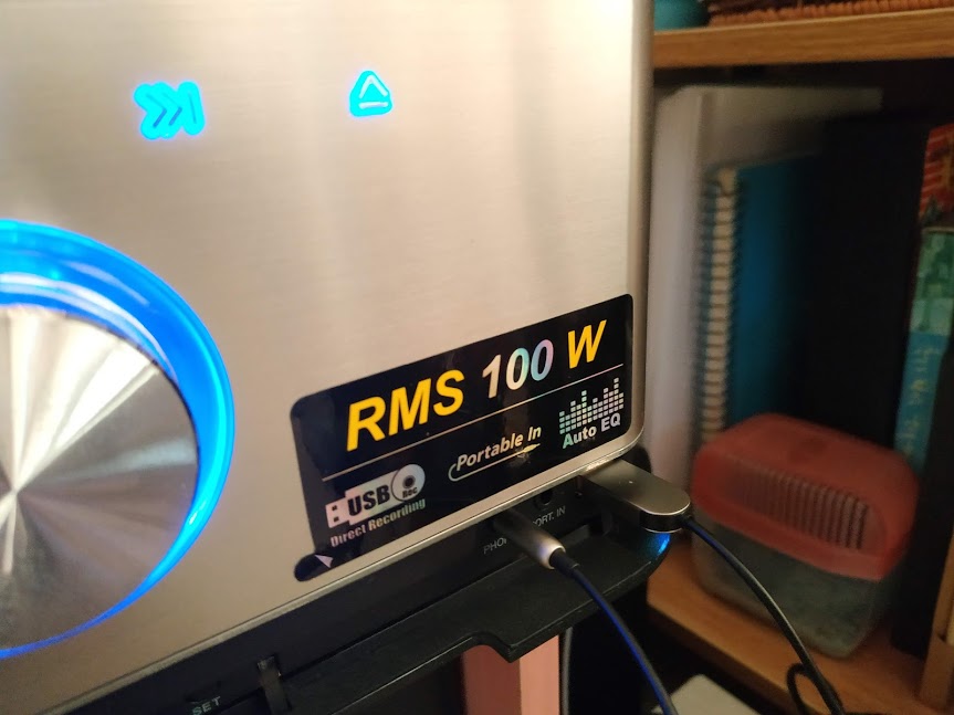 오디오에 물려서 인식을 시켰습니다. USB에 삽입하니 파란색 LED가 점멸합니다.