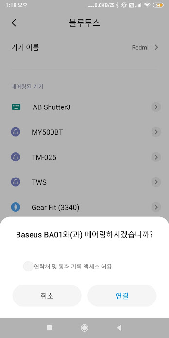 블루투스 검색을 하니 Baseus BA01라고 표시되고.