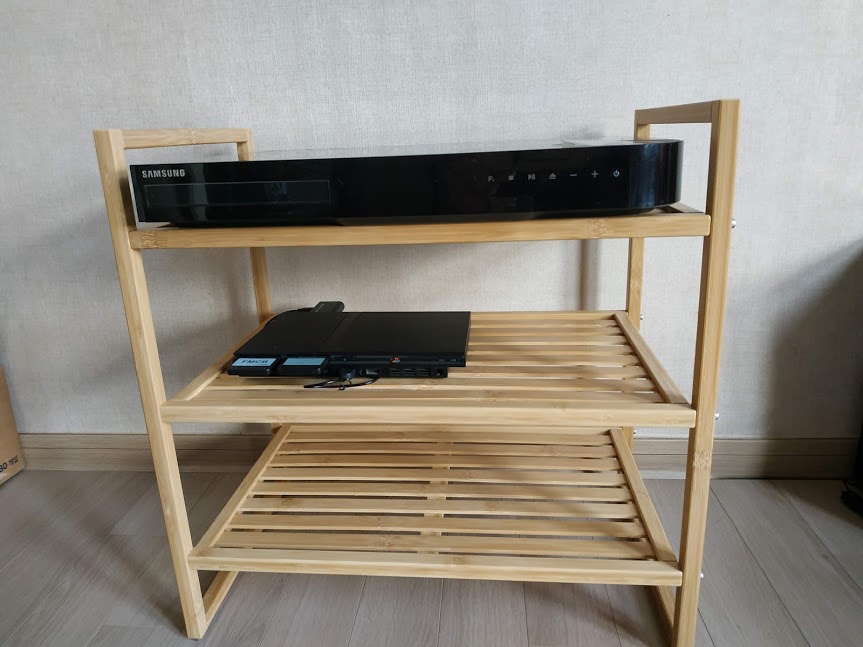 조립 난이도는 쉬운 편입니다. 30분 정도 걸렸습니다. 조금 무거운 기기를 올려놓아도 안정감이 있고, 보기보다 흔들림이 없이 튼튼합니다. 충분한 길이와 공간이 확보되어서 게임기를 놓기에 좋습니다. 바닥까지 활용한다면 4단으로 사용할 수 있겠습니다.