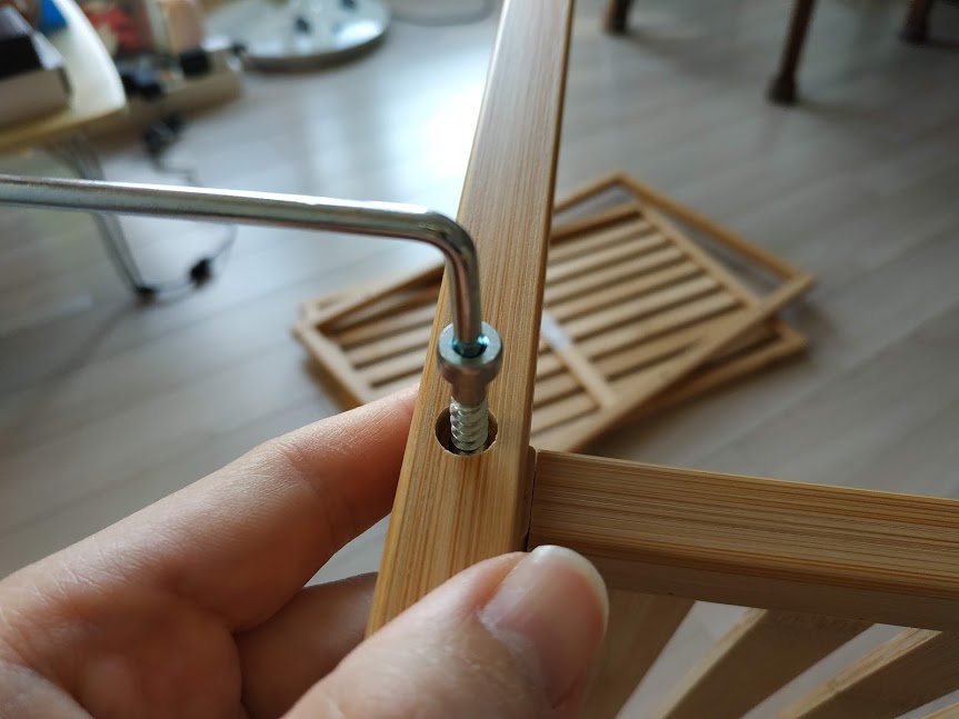 조립순서는 좌, 우 양쪽에 나사를 고정시켜주고, 마지작으로 아래에 나사를 조이면 끝.