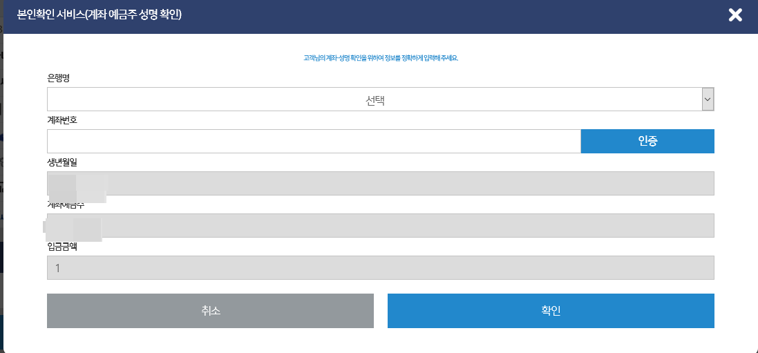 본인 명의 계좌로만 이체시킬 수 있습니다.