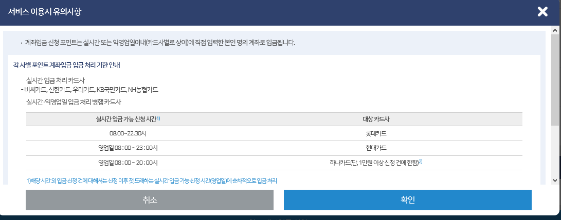 여신금융협회에서 사용 중인 카드 포인트를 조회하고 현금으로 전환 이체시키는 아주 괜찮은 서비스를 제공하고 있습니다.
