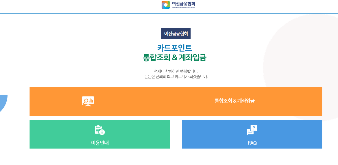 1. 여신금융협회. 카드 포인트 통합조회&계좌입금 사이트 접속합니다. ( 아래 링크 )