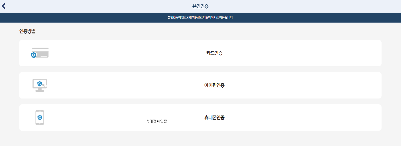 4. 본인인증을 해야 합니다. 원하는 인증 방식을 선택합니다.