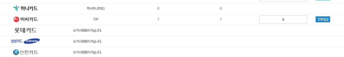 그러면 사용하는 카드와 보유 중인 포인트가 조회됩니다. 놀랍게도 비씨카드 1포인트가 있습니다. 어? 이보다 더 많았던 것 같은데. 유휴기간이 지나 다 날아가버린 듯.