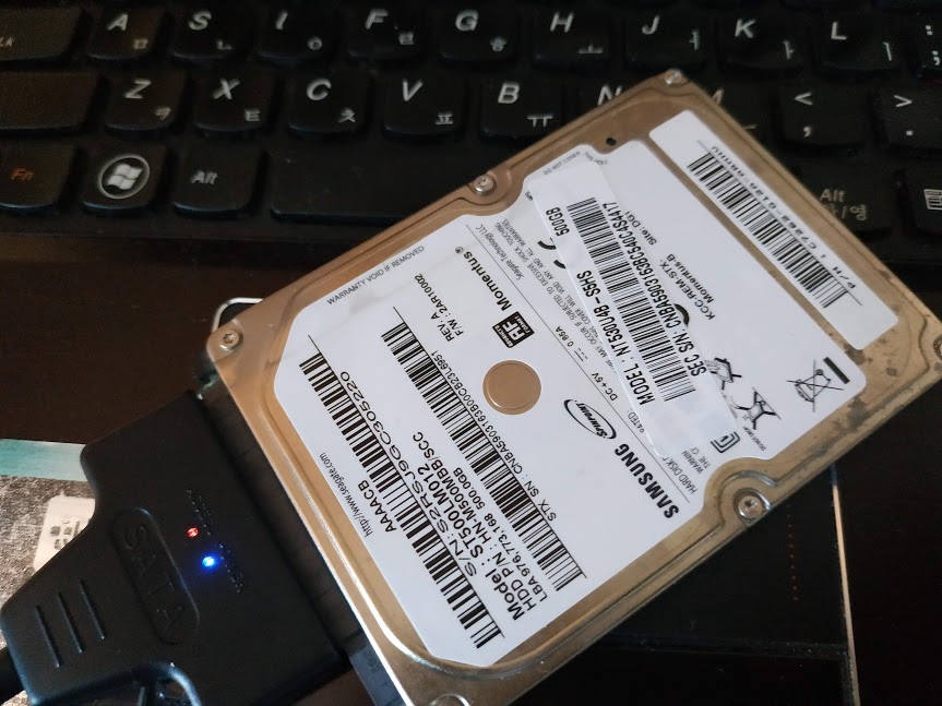 노트북에서 사용하는 2.5인치 사타 하드디스크는 PC에 바로 연결할 수 없습니다. ( SSD는 2.5인치 규격이지만 PC 메인보드에 직접 연결이 가능합니다. ) 요럴 때 이런 거 하나 있으면 편합니다. 바로 사타 USB 변환 어댑터입니다.