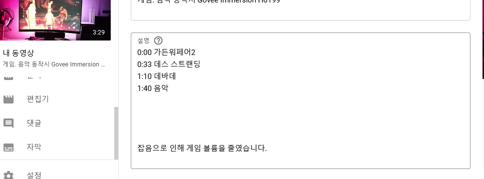 시작을 반드시 '0:00' 시작을 해야 하고 한 칸 띄우고 3글자 이상의 단어를 작성합니다. 구간별 최소 길이는 10초. 타임스탬프 개수는 최소한 3개 이상이어야 합니다.