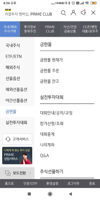 오늘 상황이 좋지 않아서 인가? 금현물을 사자마자 약간의 수익이 나기는 했습니다. 90원 수익... 나쁘지는 않네요.