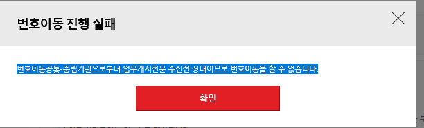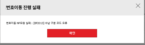 번호이동 실패 [BF2013] 수납 구분 코드 오류.