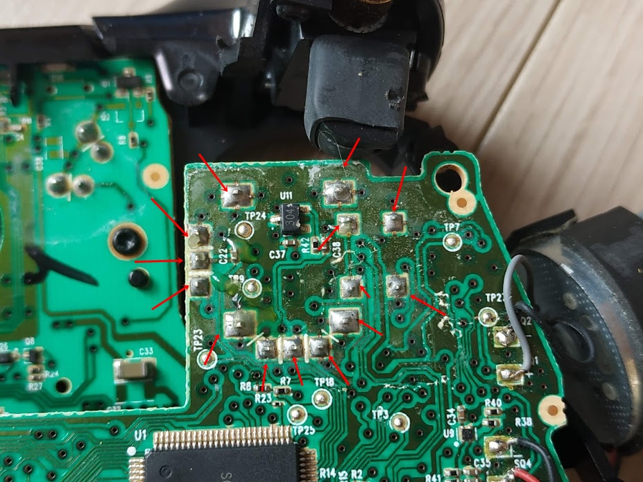 작업한 패드는 1세대입니다만. 구조는 동일했습니다. 임시방편으로 아날로그 스틱 부분에다 BW-100을 뿌려주는 방법도 있습니다. 말 그래도 임시방편일 뿐이고 시간이 지나면 재발합니다. 아날로그 스틱은 수명이 있는 소모품입니다. 결국은 교체를 해야 문제가 해결됩니다.