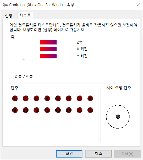 패드를 윈도에 연결을 하고 USB 게임 컨트롤러 설정으로 이동합니다.