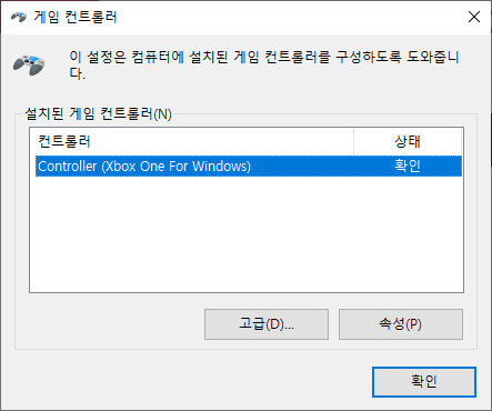 엑스박스 컨트롤러가 연결된 상태. 속성을 눌러서