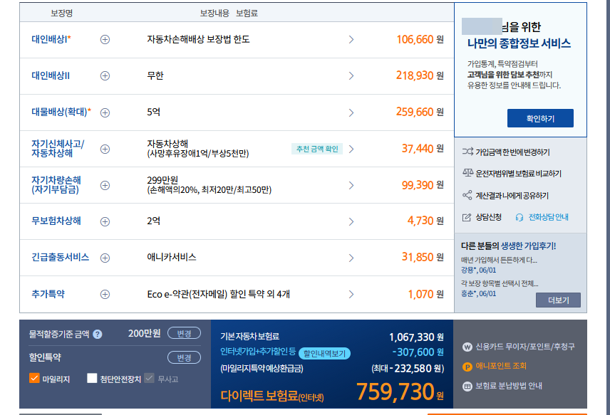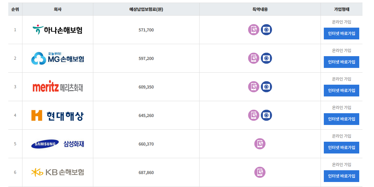 보험 만기로 자동차 보험 갱신을 했습니다. 이번 해에는 보험료가 올라갈 것이라 예상을 했습니다. 아버지가 주차장에서 차를 긁어 보험처리를 했기 때문입니다. 보험 다모아로 검색을 해보니까. 다음과 같이 나왔습니다.