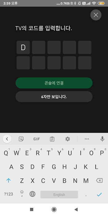 TV에 표시된 문자 입력
