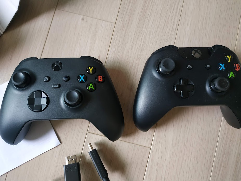 오른쪽이 엑스박스 원 구매할 때 받은 1세대 패드입니다. 큰 차이점은 없어 보입니다. 4세대가 확실히 손에 쥐는 느낌도 좋고 편안합니다. 다만 내구성이 문제라고 하더군요. 1세대도 오래되어서 아날로그 스틱 불량 문제가 발생했었습니다. 납땜으로 교체를 했습니다.