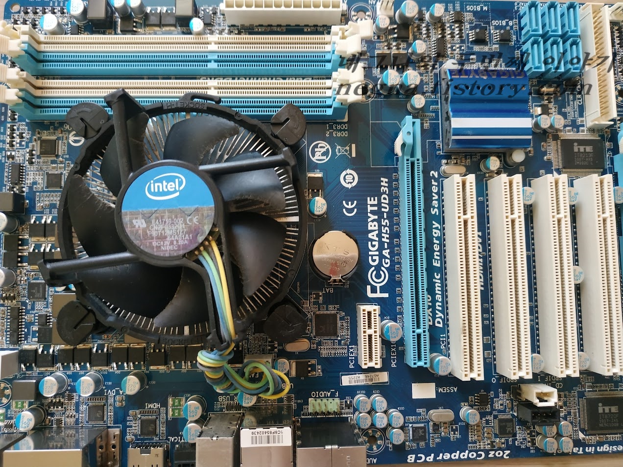기가바이트 GA-H55-UD3H 메인보드입니다. 인텔 레거시 CPU 린필드 지원하는 메인보드입니다. 잠깐 구동을 시켜 보려고 했더니. CPU 팬이 돌았다 꺼지기를 반복해서 손을 봐주고. 보드에 전원은 제대로 들어가는데 화면 출력이 되지 않았습니다. 음? 이상하다. 싶었습니다. 부팅음부터 다 정상적이라고 봤는데.메인보드 배터리도 빼냈다 다시 꼽아보다가. 알았습니다. 화면이 나오지 않는 이유를요. CPU가 린필드 i5 750이 장착되어 있습니다. 할배 취급을 받는 샌디 보다도 조상님인데. 이 녀석은 내장그래픽이 없는 CPU입니다. 답이 나왔죠. 해결방법1. 외장그래픽카드 장착을 한다.2. 내장그래픽이 있는 CPU로 바꿔준다. 내장그래픽 지원 모델은 i5-650 클락데일입니다. 그런데 이 녀석은 듀얼코어이고..