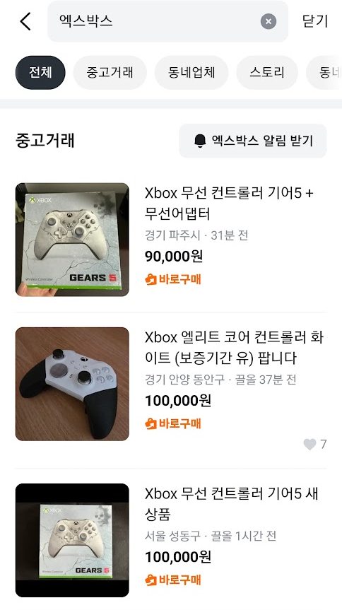 당근을 많이 사용하시나요? 한 때 자주 사용하기는 했는데. 지금은 그리 쓰지 않습니다. 당근은 근거리, 직거래 거래하는 장점이 있지만. 이용자층이 내 주변으로 한정이 되어 있습니다. 당근에서 잘 팔리지 않는 상품들이 있습니다. 예를 들면, 전자제품, 컴퓨터 부품 등. 이건 자신의 어디에 사느냐에 따라서 달라지기는 할 텐데. 당근에서 주로 거래를 하는 건 생활 용품 정도죠. 오늘 알았는데요. 당근에서도 택배거래가 가능해졌습니다. 살고 있지 않은 지역의 매물을 볼 수 있습니다. 아래 스샷을 보면. 엑스박스를 검색했습니다. 경기, 서울 다 검색이 가능해졌습니다. 상품 가격 아래로는 바로구매라는 글자가 보이고요. 구매 버튼을 누르면 결제까지 가능한 모양입니다. 아직까지 서비스를 사용해 보지 않아서 어떻다고 평가..