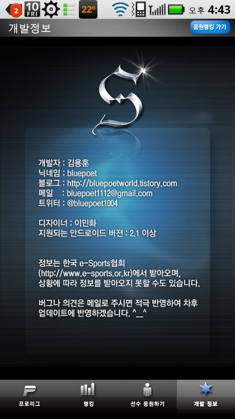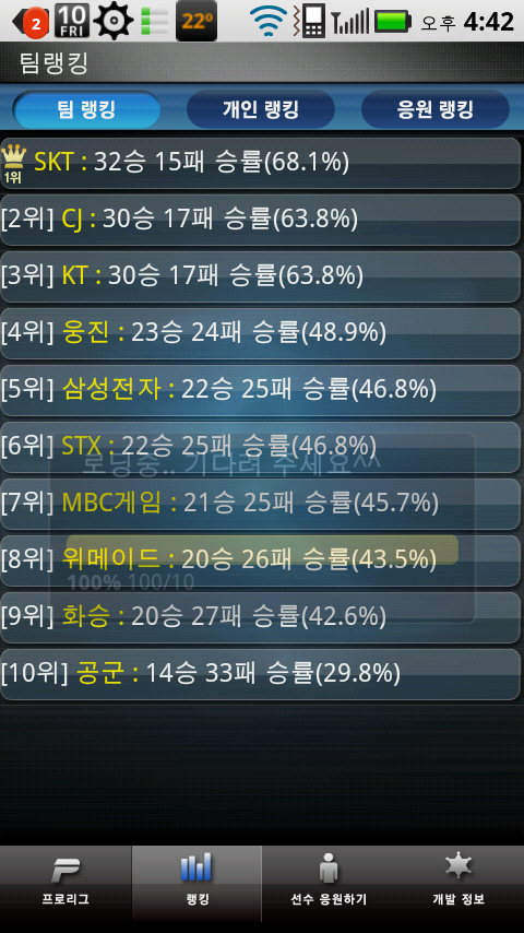 프로리그에 관한 어플리케이션이 있어서 소개합니다.